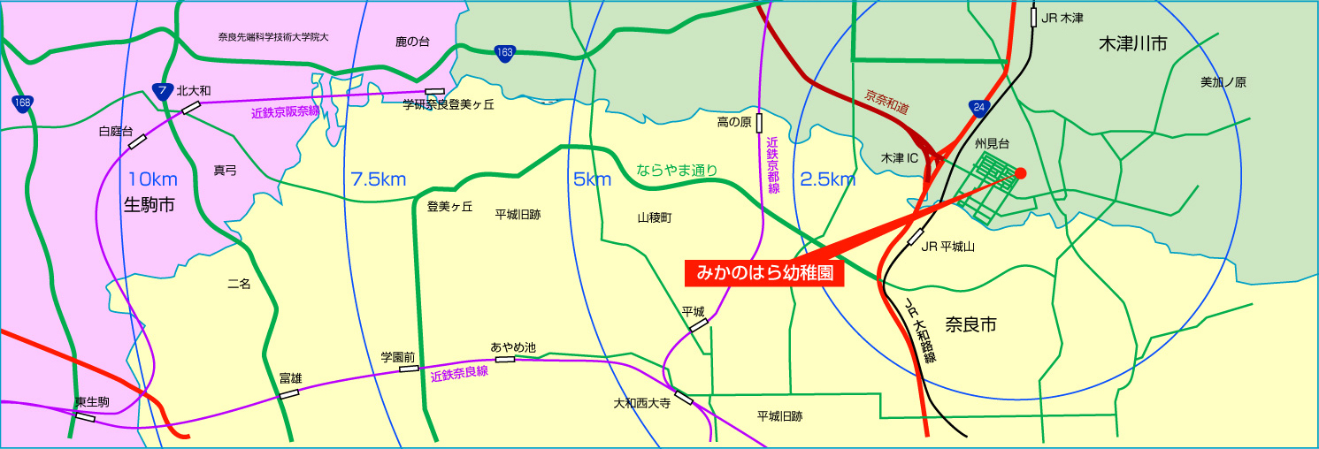 奈良市西部〜生駒市東部も30分余の通園圏です。