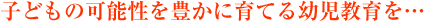 私が幼児教育に携わって約40年間、この間、未来に向かって伸びていく、焦限の可能性を秘めた子供達の姿を、教育の現場でつぶさに観察し、一人ひとりの成長を私自身の喜びとしつつ幼児教育の重要性を実感してまいりました。
