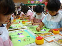 すなわち私共の実践する幼児教育とは、子供たちの生活のあらゆる局面で「知・情・体」の調和のとれた環境を整え、「動きとことばとリズム」を基調としたもっとも大切な生活体験を与えていく積極的な働きかけにほかなりません。