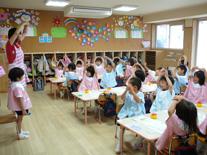 すなわち私共の実践する幼児教育とは、子供たちの生活のあらゆる局面で「知・情・体」の調和のとれた環境を整え、「動きとことばとリズム」を基調としたもっとも大切な生活体験を与えていく積極的な働きかけにほかなりません。